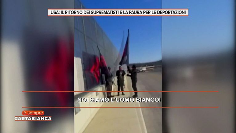 Facce coperte, urla e bandiere con svastiche: è così che un gruppo neonazista si è presentato su un ponte in Ohio.