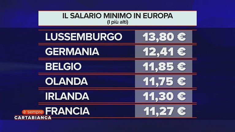 Bianca Berlinguer mostra il salario minimo nei paesi dell'Europa.