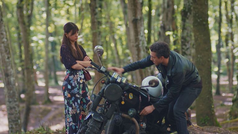 Ayda e Ibo restano impantanati con la moto in un bosco, senza segnale.