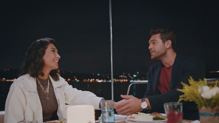 Demir e Selin passano una serata romantica cenando in barca.