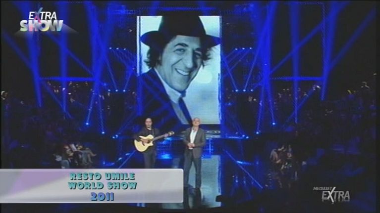 Checco Zalone e Claudio Bisio durante il Resto umile world show 2011