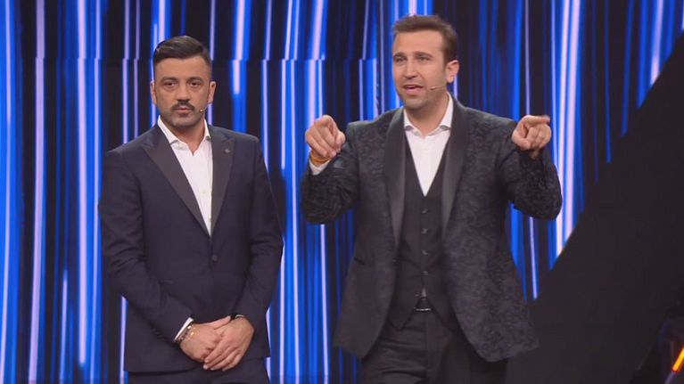 Jò Donatello è il secondo ospite musicale della Sagra del torcinello di Pio e Amedeo a canta "Ti piace il gelatino".