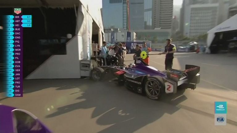 Clamoroso errore di Bird che non centra il box e prende i meccanici