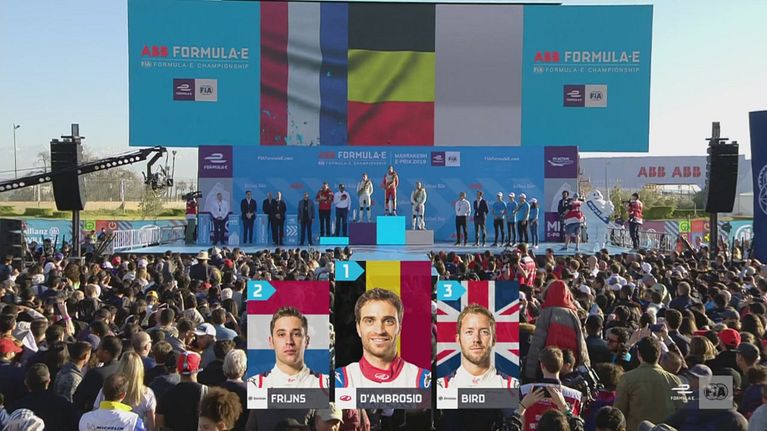 Da Costa, Buemi e Rowland festeggiano sul podio.