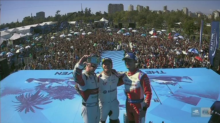 Da Costa, Buemi e Rowland festeggiano sul podio.