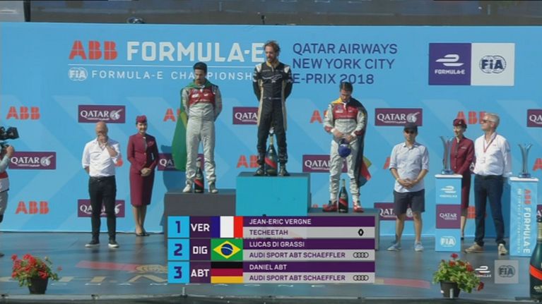 Da Costa, Buemi e Rowland festeggiano sul podio.