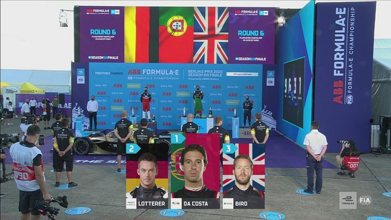 André Lotterer e Sam Bird affiancano il portoghese Antonio Felix Da Costa sul podio di gara-1 dell'E-Prix di Berlino