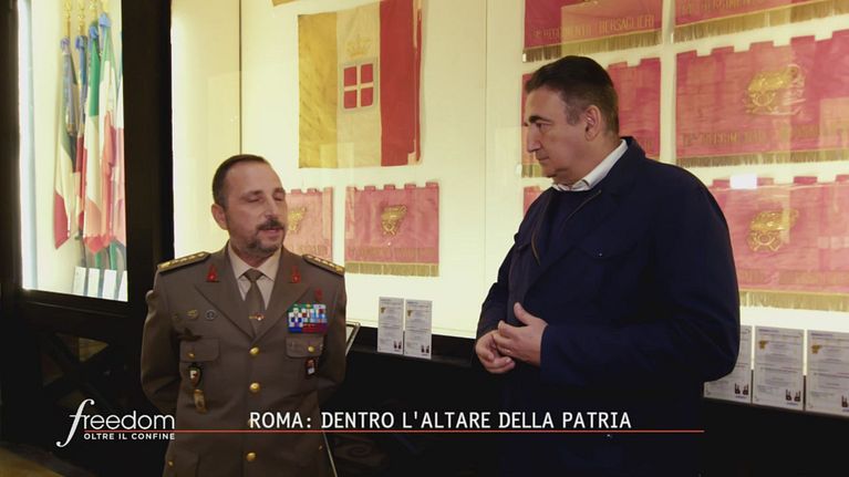 All'interno dell'Altare della Patria, prima di arrivare alla tomba del milite ignoto, si attraversa il Sacrario delle Bandiere che hanno fatto la storia del nostro Paese