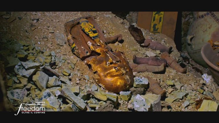 Un'esperienza unica: Zahi Hawass mostra una maschera d'oro all'interno di una tomba mai visitata prima