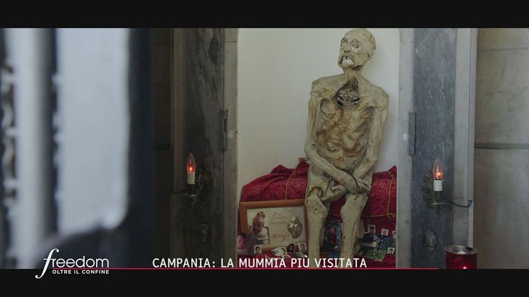 Roberto Giacobbo ci guida all'interno della cappella di Bonito che ospita la mummia di Vincenzo Camuso: meta di pellegrinaggio per migliaia di persone.