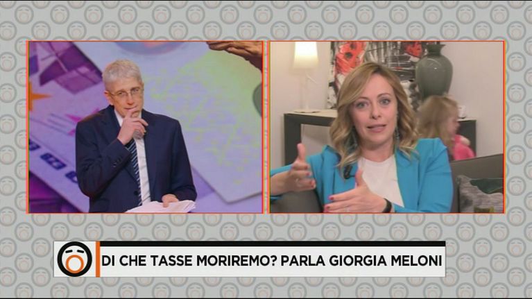La simpatica e impaziente intrusione della bimba che, mentre mamma Giorgia parla di tasse, vuole la sua scimmietta!