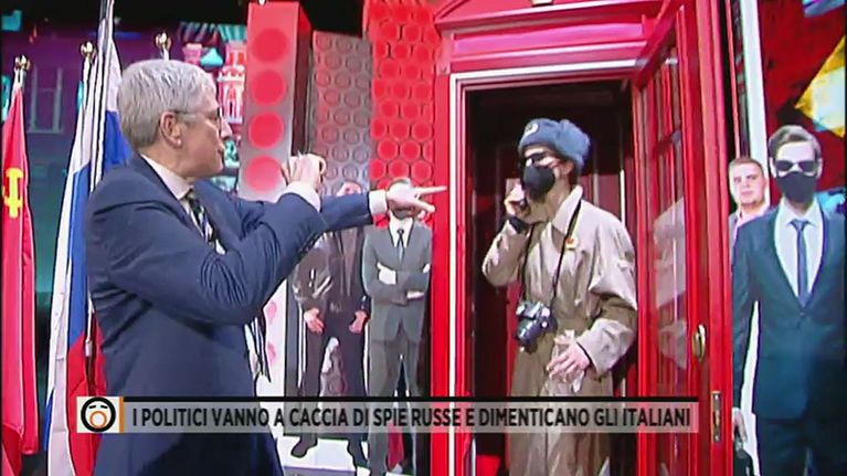 Mario Giordano alla ricerca di spie russe nello studio.