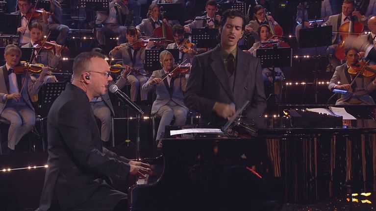 Gigi D'Alessio e Mahmood sorprendono il pubblico con una versione intensa ed emozionante di "Tu si 'na cosa grande". Due voci diverse, due stili lontani che si incontrano in un'interpretazione unica, capace di rendere omaggio a un classico senza tempo.
