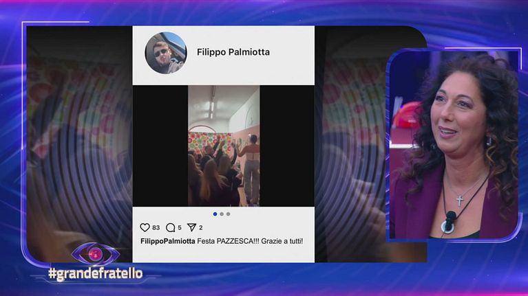 Simona Ventura mostra a Donatella alcuni video riguardanti la festa del figlio