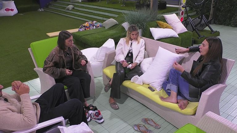 Alcuni Casalinghi si trovano in giardino a scambiarsi pareri su ciò che è appena successo durante la cena
