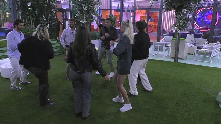 Scatenati e pieni di energia, i casalinghi si lanciano nei balli di gruppo in giardino