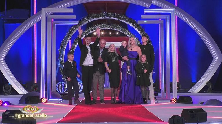 Padre, fratelli, sorella e mamma si susseguono in passerella per regalare a Giulia momenti di tenerezza e parole d'affetto, in un momento toccante che la commuove
