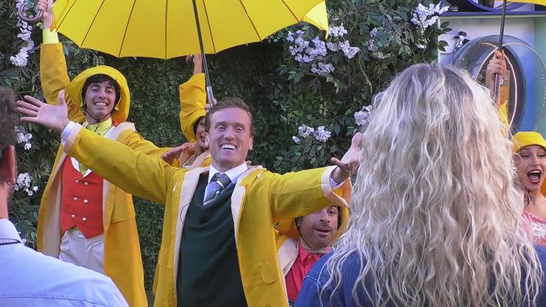 Dalla cucina al giardino, canti, tip tap e coreografie trasformano la Casa nel musical "Cantando sotto la pioggia"