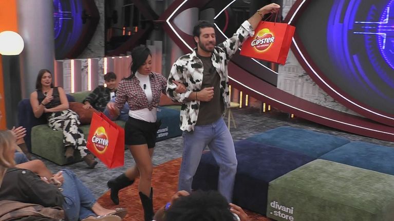 Francesca e Omer offrono ai loro compagni di avventura le patatine Cipster per iniziare a stuzzicare il loro appetito e dare il via alla serata