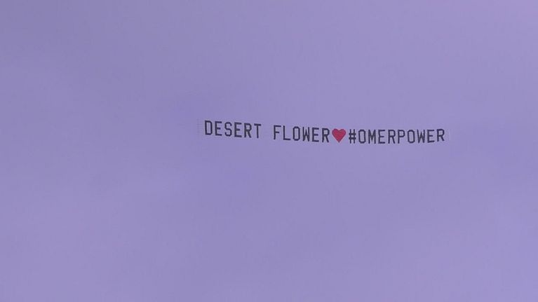 Uno striscione dedicato a Omer arriva con parole di sostegno da parte dei suoi fan