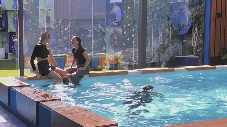 Tra un tuffo e una risata, gli inquilini si divertono a farsi scherzi in piscina