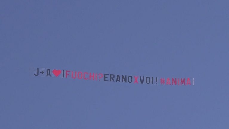 Un aereo da parte degli #Anima spiega che i fuochi d'artificio dell'altra sera erano dedicati alla coppia, per celebrare un mese di relazione