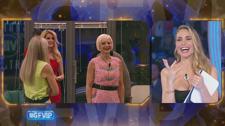 Antonella Elia attraversa la Galleria del Tempo ed entra nella Casa di Grande Fratello VIP dove la attende, insieme agli altri concorrenti, anche Adriana Volpe.