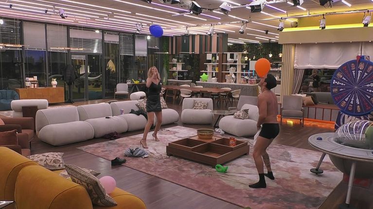 Renato Biancardi e Adriana Volpe sono i protagonisti del gioco "Ma come ti svesti?", in cui dovranno svestirsi senza mai far cadere un palloncino