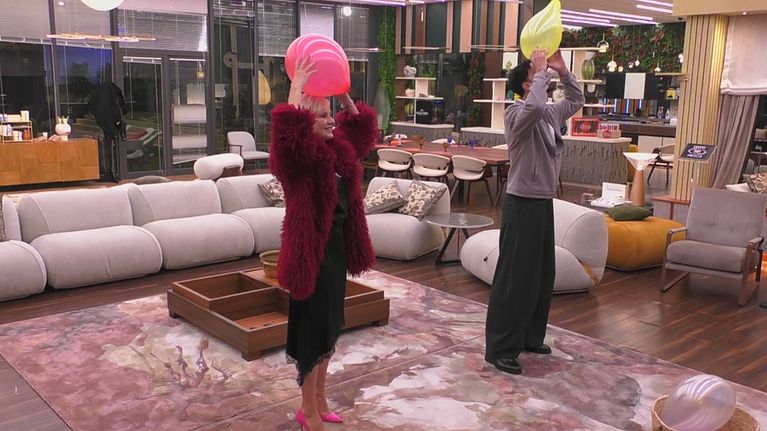 Riusciranno i due VIP a svestirsi senza far cadere per terra il palloncino?