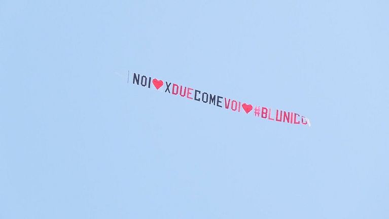 "Noi x due come voi #blunico": un aereo sorvola la Casa per dedicare un messaggio a Blu Barbara Prezia e Nicolò Brigante