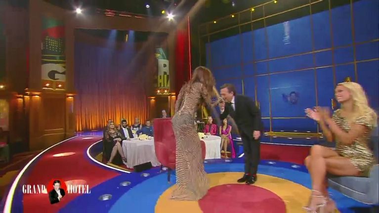 Claudia Galanti, prima esclusa dall'isola, in studio al Grand Hotel Chiambretti
