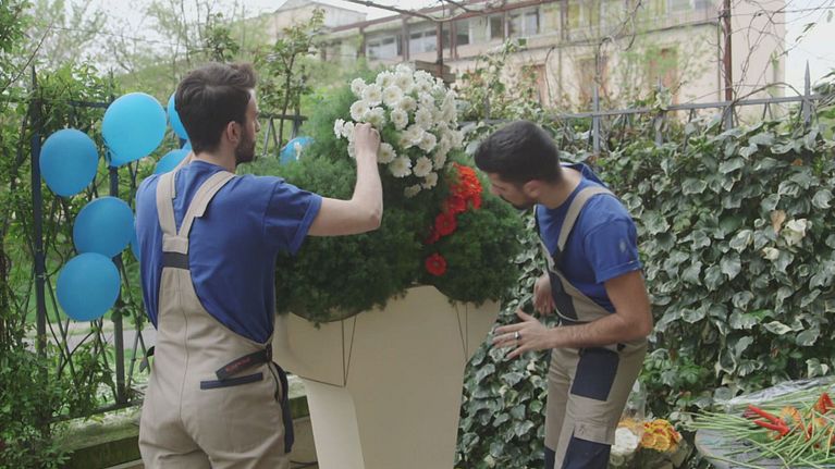 I nostri gardeners dovranno realizzare due coni gelato alti due metri utilizzando delle gerbere colorate.