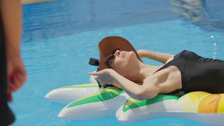 Meryem viene sorpresa da Fusun in piscina.