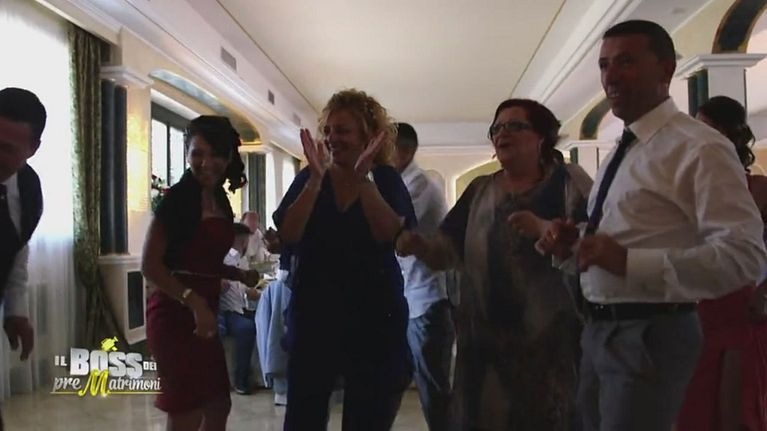 Gli invitati ballano e ripercorrono le tappe del matrimonio tra nuovi affetti e rinnovati sentimenti.