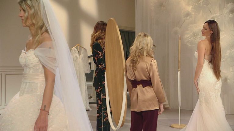 Le future spose indossano con gioia a stupore i primi tre abiliti proposti da Raffaella Fusetti.