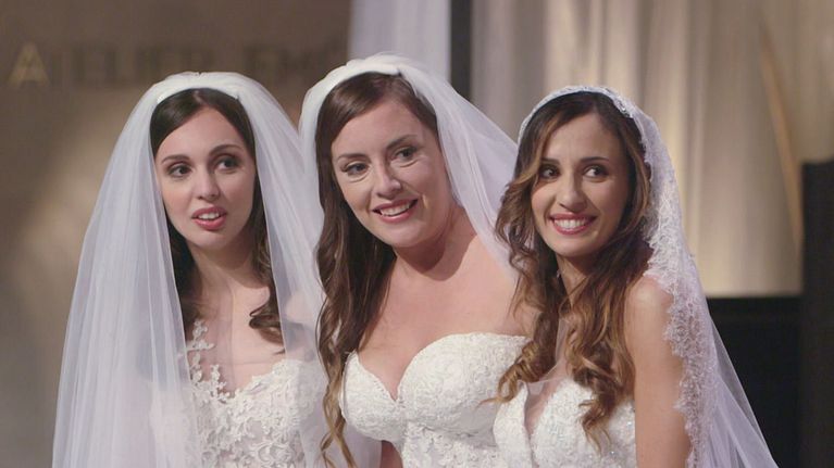Le future spose indossano con gioia a stupore i primi tre abiliti proposti da Raffaella Fusetti.