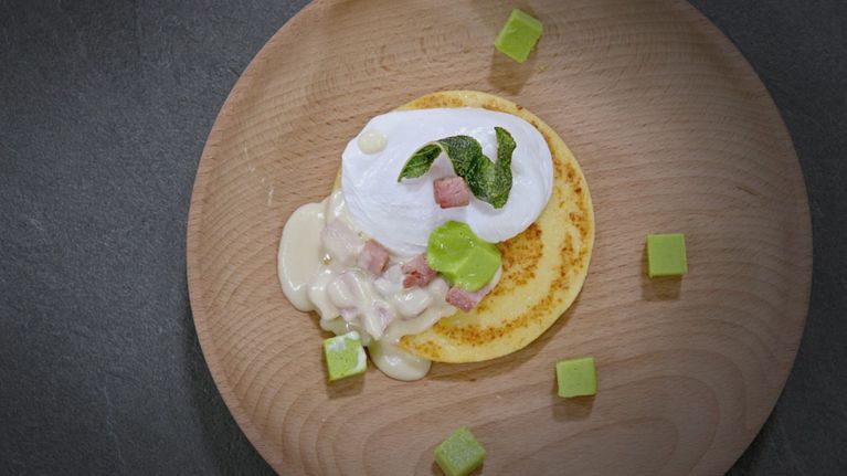 Crostone di polenta all'uovo affogato alle "3P"