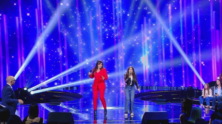 Carlotta e mamma Erika aprono la seconda puntata di "Io canto Family" cantando il brano "Sei nell'anima".