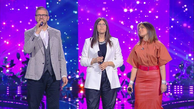 Sofia, papà Cristian e Cristina Scuccia cantano il brano "Grazie perchè" per la loro esibizione.