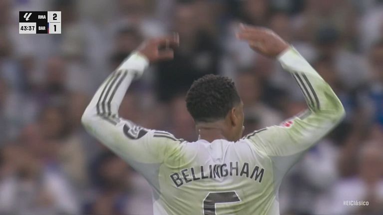 A pochi minuti dal pareggio del Barcellona i Blacos tornano in vantaggio. Gol di Bellingham grazie ad un cross in area di Vinicius.