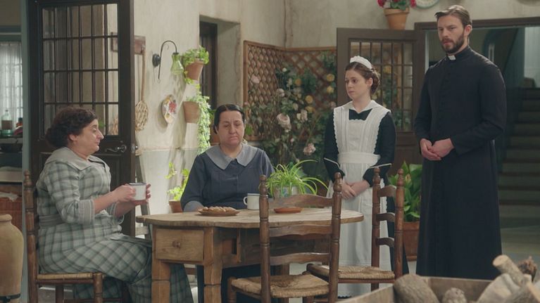 Eugenia chiede a Martina di accompagnarla a trovare Cruz e lei chiede a sua volta allo zio Alonso, il quale vieta categoricamente che si faccia visita alla marchesa. Toño è sparito, con soldi e automobile e Simona e Manuel sono molto amareggiati. Petra si dimostra comprensiva con Simona, lasciando tutti esterrefatti per la sua sensibilità. Angela trova un pretesto con Petra per far uscire Curro e Lope dalla Promessa. I due vanno alla gioielleria Llop sotto falso nome: Lope dice di chiamarsi Ramiro Pedralba, e Curro Amadeo Velarde. Il pretesto è quello di dover comprare un gioiello per la fidanzata del futuro marchese Velarde, ovvero Curro. Intanto alla Promessa arriva una visita inattesa il duca Lisandro De Carvajal y Fuentes.