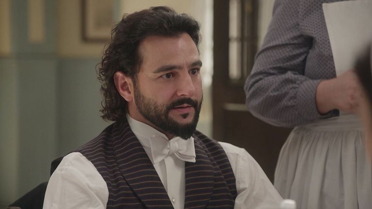 Mauro si lamenta con gli altri membri della servitù a causa della colazione che è stata servita dal nuovo maggiordomo.