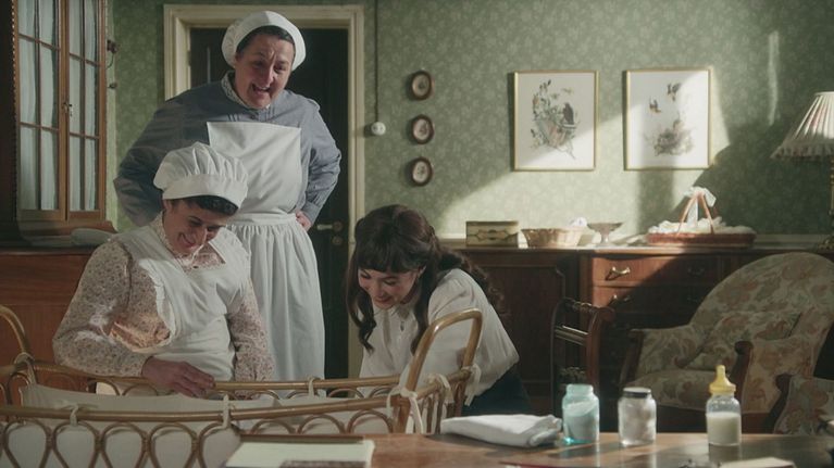 Candela, Simona e Catalina giocano con la figlioletta di Pia e si occupano di lei. Teresa riporta la volontà della Marchesa di vedere la bambina.