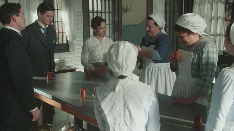 La servitù, Catalina e Pelayo fanno un brindisi speciale in cucina.
