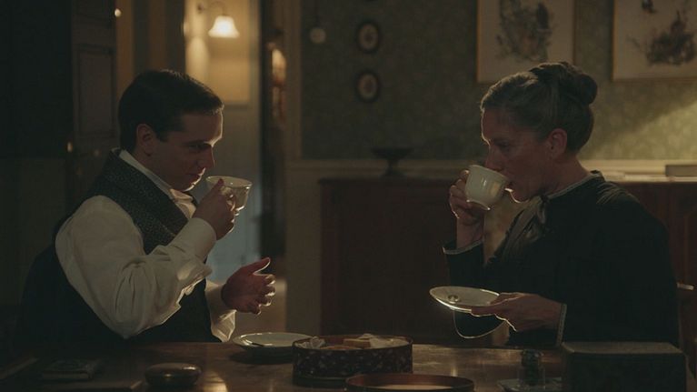 Santos e Donna Pia bevono un the insieme e parlano delle persone della Promessa.