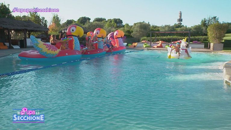 La prova è finita e le Pupe e i secchioni si godono una giornata di relax tra giochi in giardino e festa in piscina.