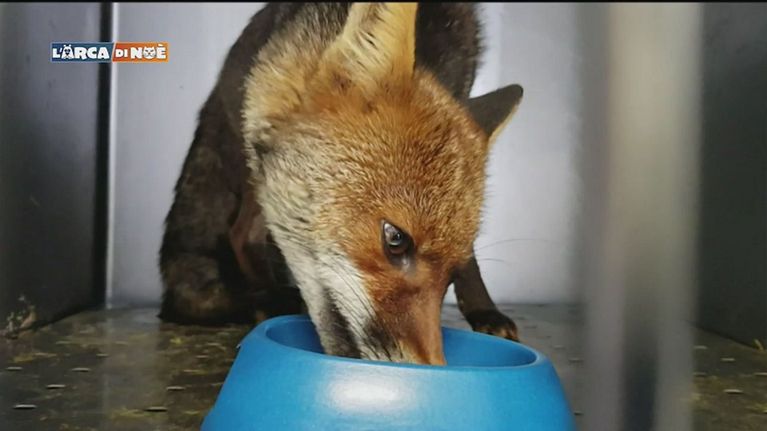 Dopo essere stata curata, una volpe che era stata investita viene rimessa in natura.