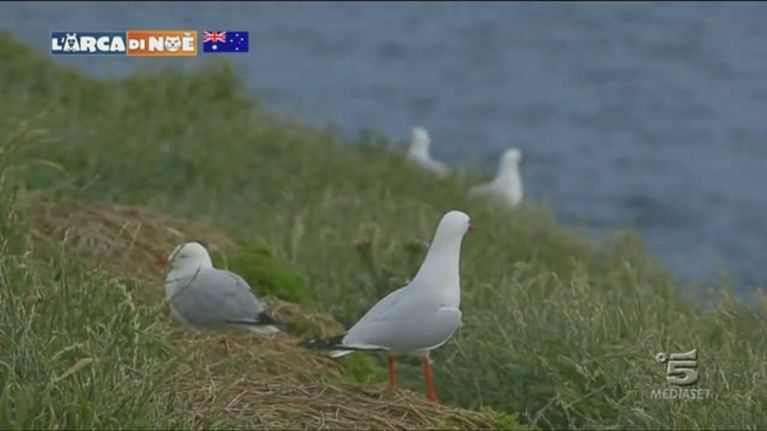 Le colonie del gabbiano d'argento che vive in Australia. La colorazione del becco e delle zampe è rosso intenso.