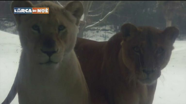 Il Parco Natura Viva ospita specie abituate al grande caldo. Ma la neve sembra incuriosire anche le specie esotiche.