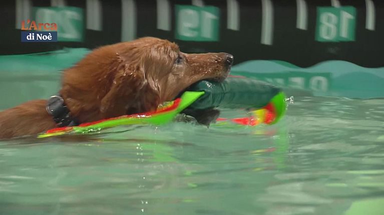Le gare di Speed retriever al centro acquatico cinofilo DockDogs di Roma.